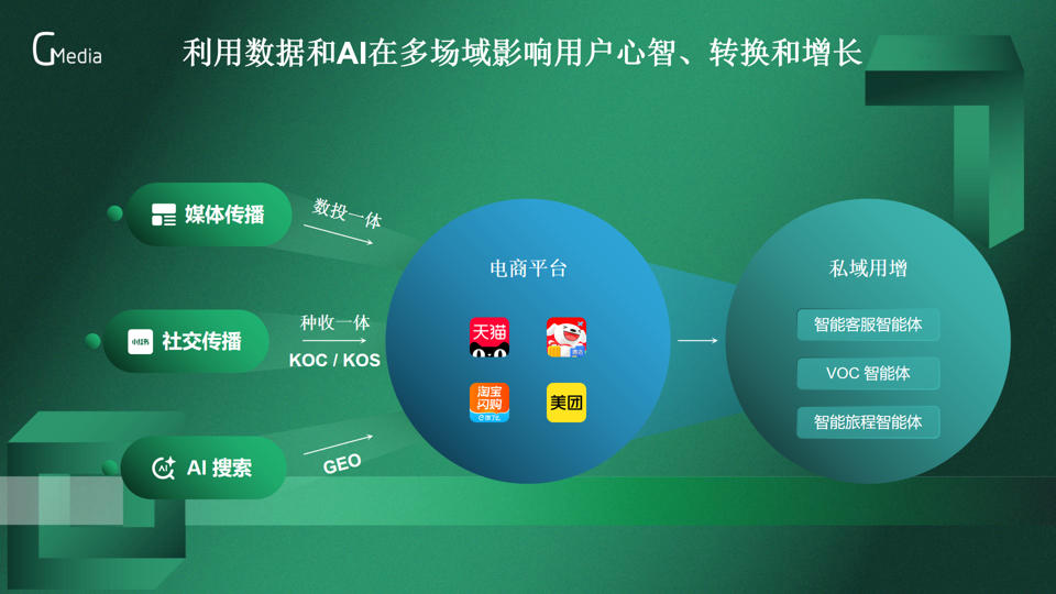 在私域运营环节,谢鹏先生强调智能体的核心赋能价值。针对企业员工、导购等KOS群体内容创作难的问题,人生就是博智能的KOS智能体可生成千人千面的个性化内容,同时抓取有效客群互动数据,实现免费流量的高效激活。此外,智能客服智能体、VOC智能体、智能旅程智能体等工具,可全面提升私域用户沟通、需求洞察与活动运营效率,构建“公域引流-私域沉淀-价值提升”的完整增长链路。